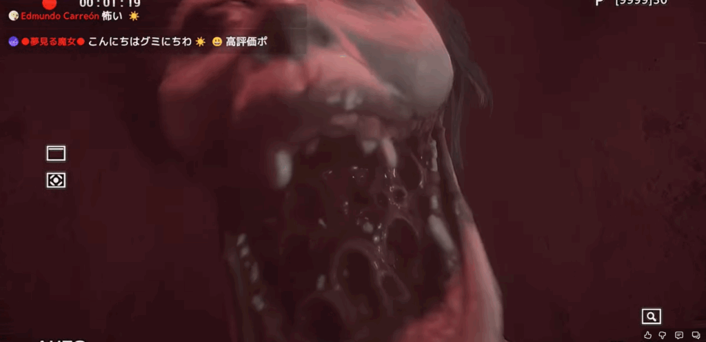 一瞬気を失った主人公ですが、気を取り直してトイレから出ようとすると、主人公は異形のものを目にします。先ほど現れた老婆の様ではありますが、巨大な頭をした老婆が不気味な音を立てながら廊下を徘徊しています。
