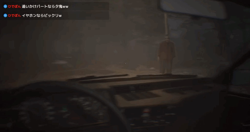 ようやく落ち着いた主人公が走る道端に、あの老婆が佇んで不気味にこちらを見つめていました。