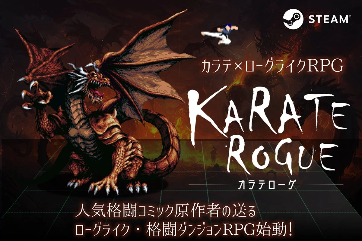 「KARATE ROGUE -カラテローグ-」は、「ローグライク格闘ダンジョンRPG」と称されるPC向けゲームです。プレイヤーは身体ひとつでダンジョンに挑み、武術の技を駆使してモンスターと戦い、深淵へと進んでいきます。