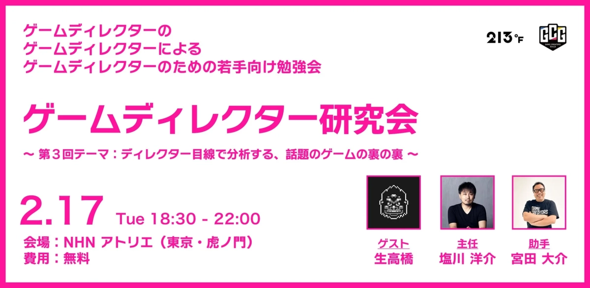 若手ゲームディレクター向け勉強会「ゲームディレクター研究会 #03」2月17日(水)に開催決定!『Öoo』『ElecHead』の生高橋氏がゲスト登壇