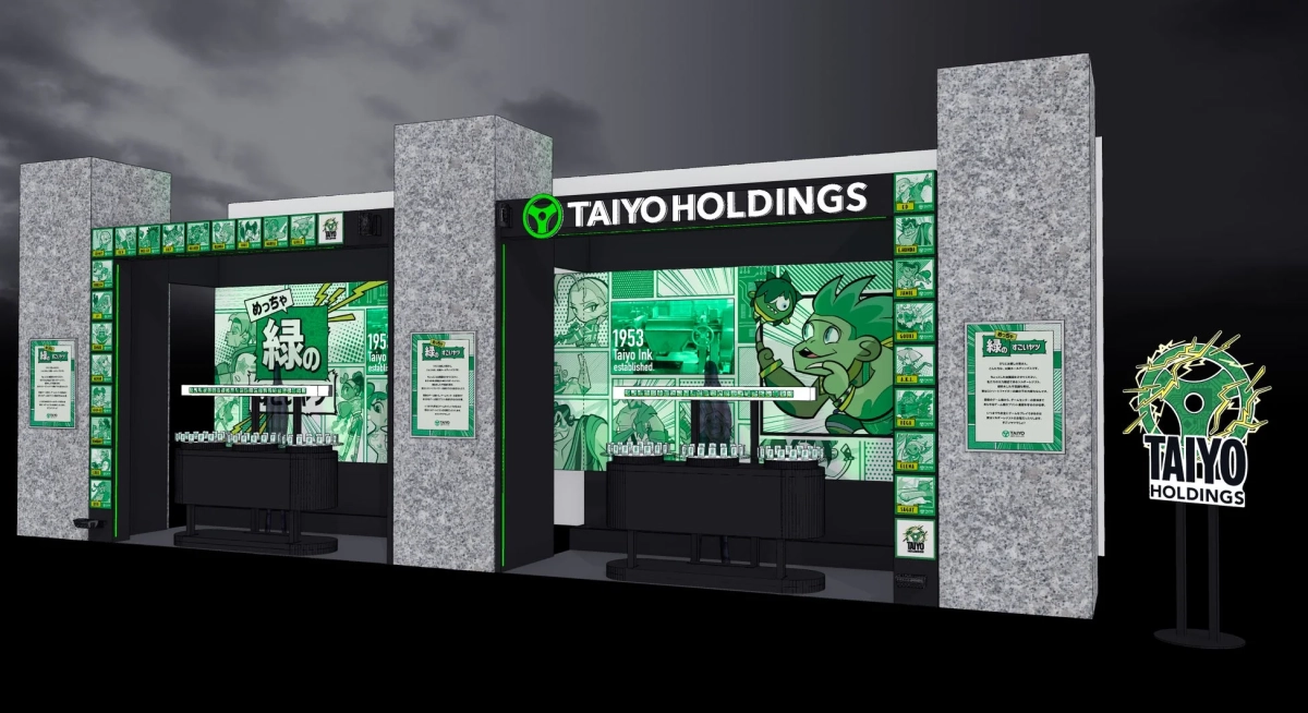 今年のブースは「めっちゃ緑のすごいやつ。」をコンセプトにデザインされました。太陽ホールディングスの主力製品であるソルダーレジストは、最新のゲーム機からゲームセンターの筐体まで、あらゆるゲーム機のプリント基板を保護しています。ソルダーレジストの象徴的なカラーである緑色一色で『ストリートファイター6』のキャラクターたちを含むブース全体がデザインされています。ソルダーレジストの用途や効果は、動画やパンフレット、クロスワードクイズなどを通じて楽しく説明され、同社とeスポーツの関わりが表現されています。