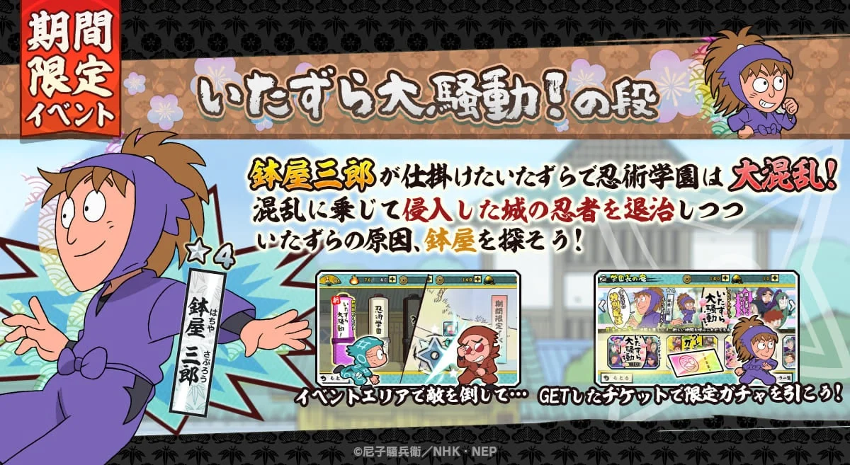 『忍たま乱太郎 ふっとびパズル!の段 あげいん!』で期間限定イベント「いたずら大騒動!の段」が開催!保健委員のメンバーも新登場