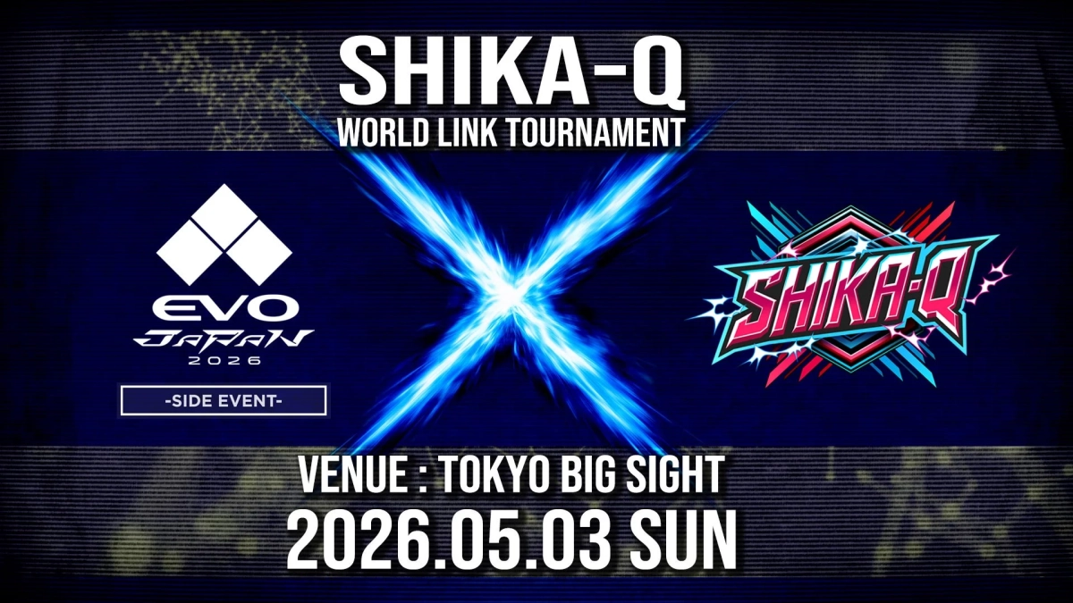 「EVO Japan 2026」のサイドイベントとして、オフライン公式トーナメント【SHIKA-Q World Link Tournament】が開催されます。本大会はシングルエリミネーション形式で実施され、現在参加者の募集が開始されています。