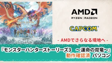 雑記 【TSUKUMO】G-GEAR、『モンスターハンターストーリーズ3 ~運命の双竜~』動作確認済PCの新モデルを発売 TSUKUMOブランドのゲーミングPC「G-GEAR」から、AMD Radeon™ RX 9000 シリーズ グラフィックスカードを搭載した『モンスターハンターストーリーズ3 ~運命の双竜~』動作確認済PCの新モデルが2026年4月9日(木)に発売されました。本モデルは、高いグラフィック性能と安定性を兼ね備え、ゲーム体験をより一層引き上げます。 2026.04.09 雑記
